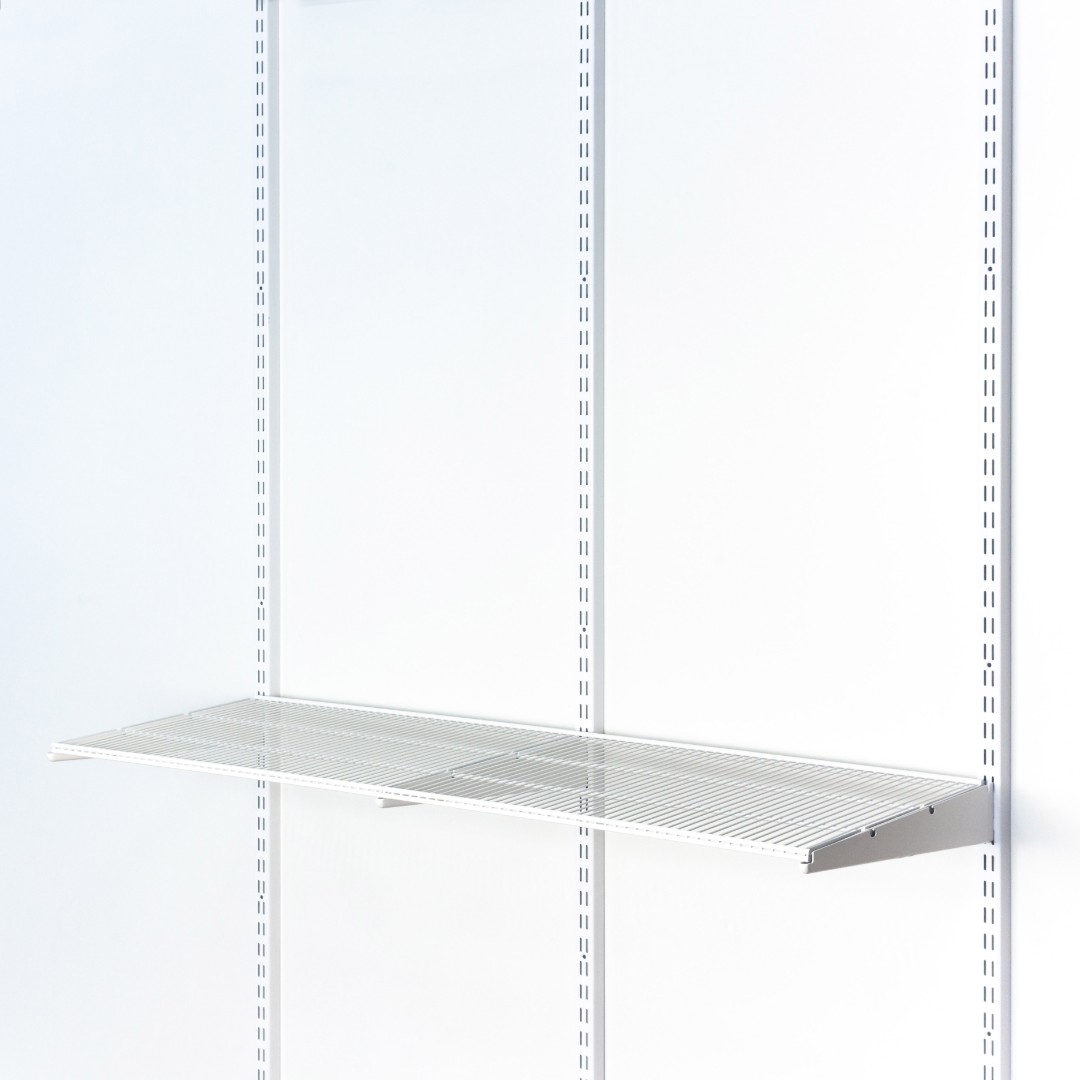 Полка проволочная 405х1212мм для системы хранения Gardie. Устанавливается одна полка на две секции 607мм. Для установки требуется 3 кронштейна 420мм. Проволочные полки удобны тем, что на них не собирается пыль и благодаря своей конструкции сквозь полку всегда можно увидеть, что на ней лежит. Отлично подходит практически для любых задач по хранению. Доукомплектовать проволочную полку можно разделителем проволочной полки 405мм, использовать подвес под проволочную полку, или установить две декоративных планки 900мм. из массива берёзы, что добавит солидности и премиальности вашей гардеробной комнате. Изделие выполнено из стальных прутков диаметром 6мм и 2,5 мм. Полка, полностью окрашена с использованием технологий нанесения полиэфирного порошкового покрытия. При монтаже проволочные полки могут отпиливаться в нужный размер, отпиленный край убирается внутрь кронштейна.