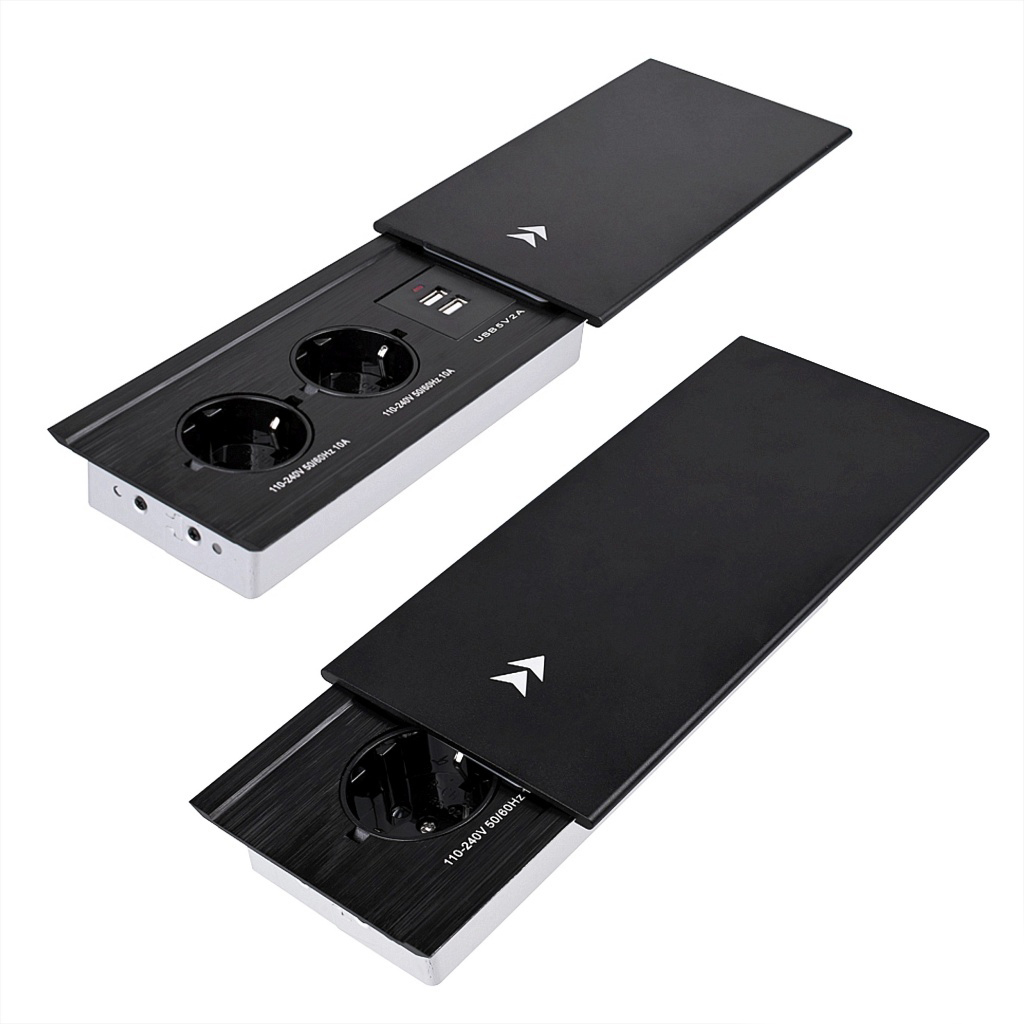 Встраиваемый удлинитель AKS Atlas,2 розетки,2*USB,HDMI,LAN,провод1,8 м, черный