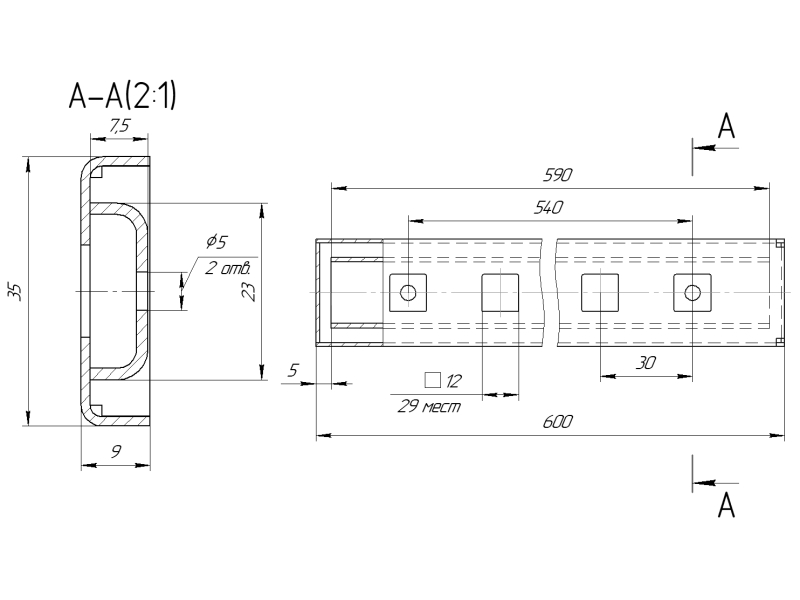 Шина рейлинговой системы L-600 черная RB